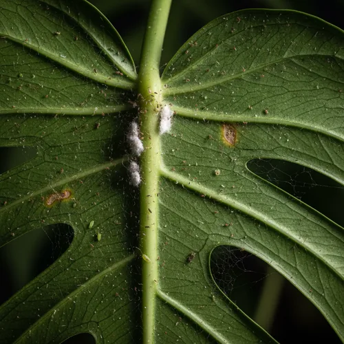 Les acariens forment de fines toiles sous les feuilles et provoquent des taches jaunes en pointillés. Ils prolifèrent dans les environnements chauds et secs, typiques des intérieurs québécois en hiver. Nettoyez chaque feuille (recto et verso) avec un chiffon humide, puis pulvérisez de l'huile de neem diluée toutes les 5 jours pendant 3 semaines. Augmentez l'humidité ambiante pour prévenir les récidives.